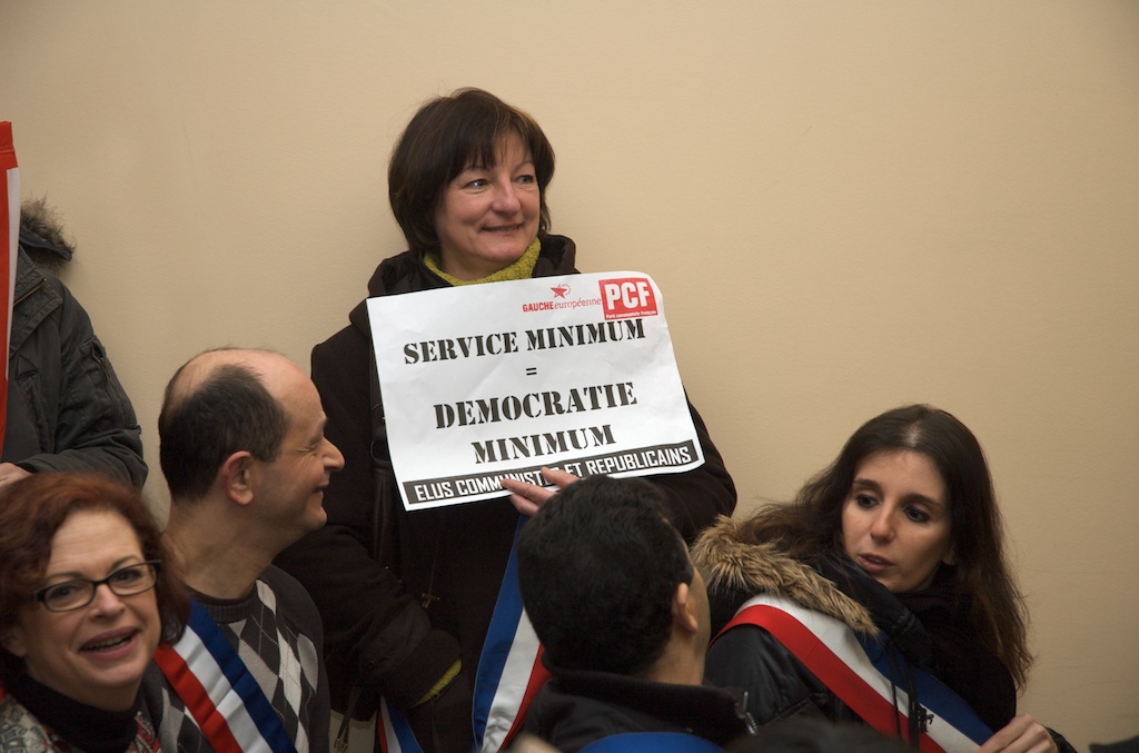 Les élus refusant le service minimum d'accueil au tribunal administratif de Versailles le 29 janvier |